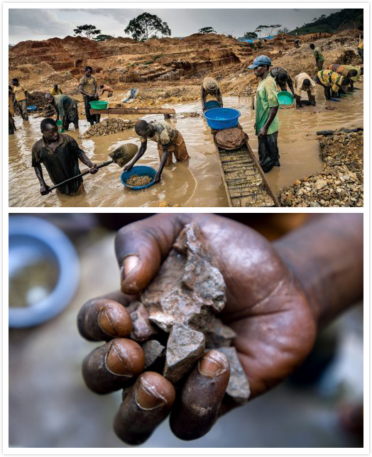 当我们拿着新买的手机到处炫耀时,你有没有想过,在同一个时空下,有人为了供应手机里所需要的金属元素而失去了自由乃至是生命,它的背后也许沾染了战争的鲜血与邪恶呢?这并不是危言耸听,虽然你的手机并不是图中这些被剥削的劳役生产的,但制造手机所需要的一些金属矿物,却出自这些黝黑之手。