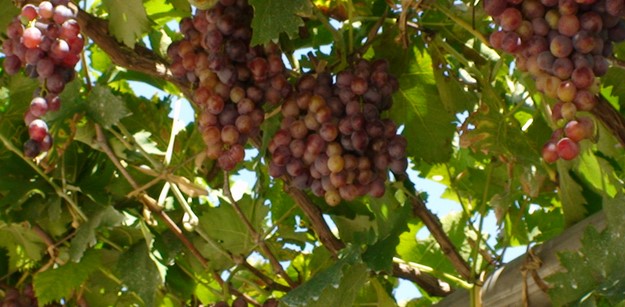 在葡萄园里的棚架上面挂满了串串宛如玛瑙般的葡萄,一看到就会让人留连忘返,垂涎欲滴